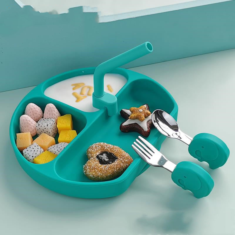 10 PCs Baby Silicone Tableware Suit Round Divided Bowl With Lid